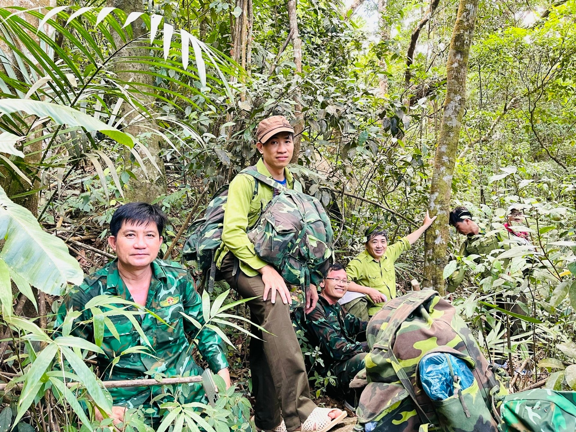 Cán bộ, nhân viên Ban Quản lý Khu bảo tồn thiên nhiên Núi Ông phối hợp tuần tra, kiểm tra hiện trạng rừng trên lâm phần phụ trách