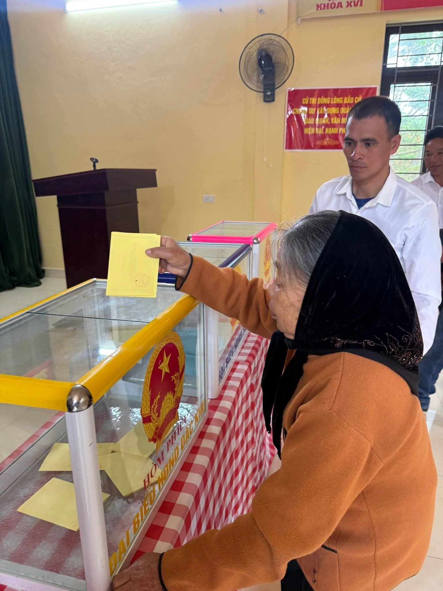 Cụ Thùy tự tay bỏ phiếu lá phiếu bầu cử, thực hiện quyền công dân thiêng liêng. Ảnh: Facebook Vi Lê
