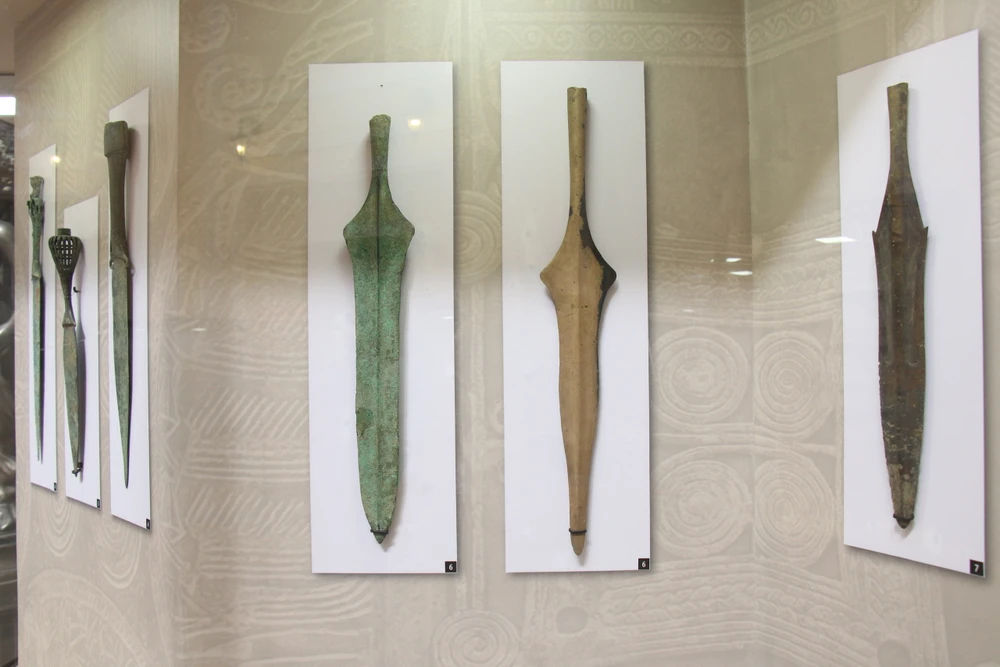 Nhóm “Sức mạnh thời đại” giới thiệu các loại vũ khí đánh gần và đánh xa của cư dân Đông Sơn, gồm dao găm, rìu chiến, mũi giáo, mũi lao, mũi tên.
