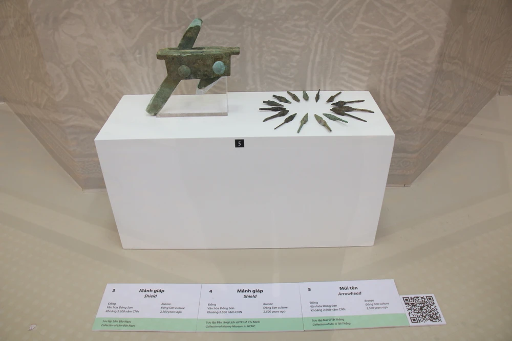 Các hiện vật tiêu biểu được trưng bày tại chuyên đề "Đồng Vọng". Ảnh: THU HƯƠNG
