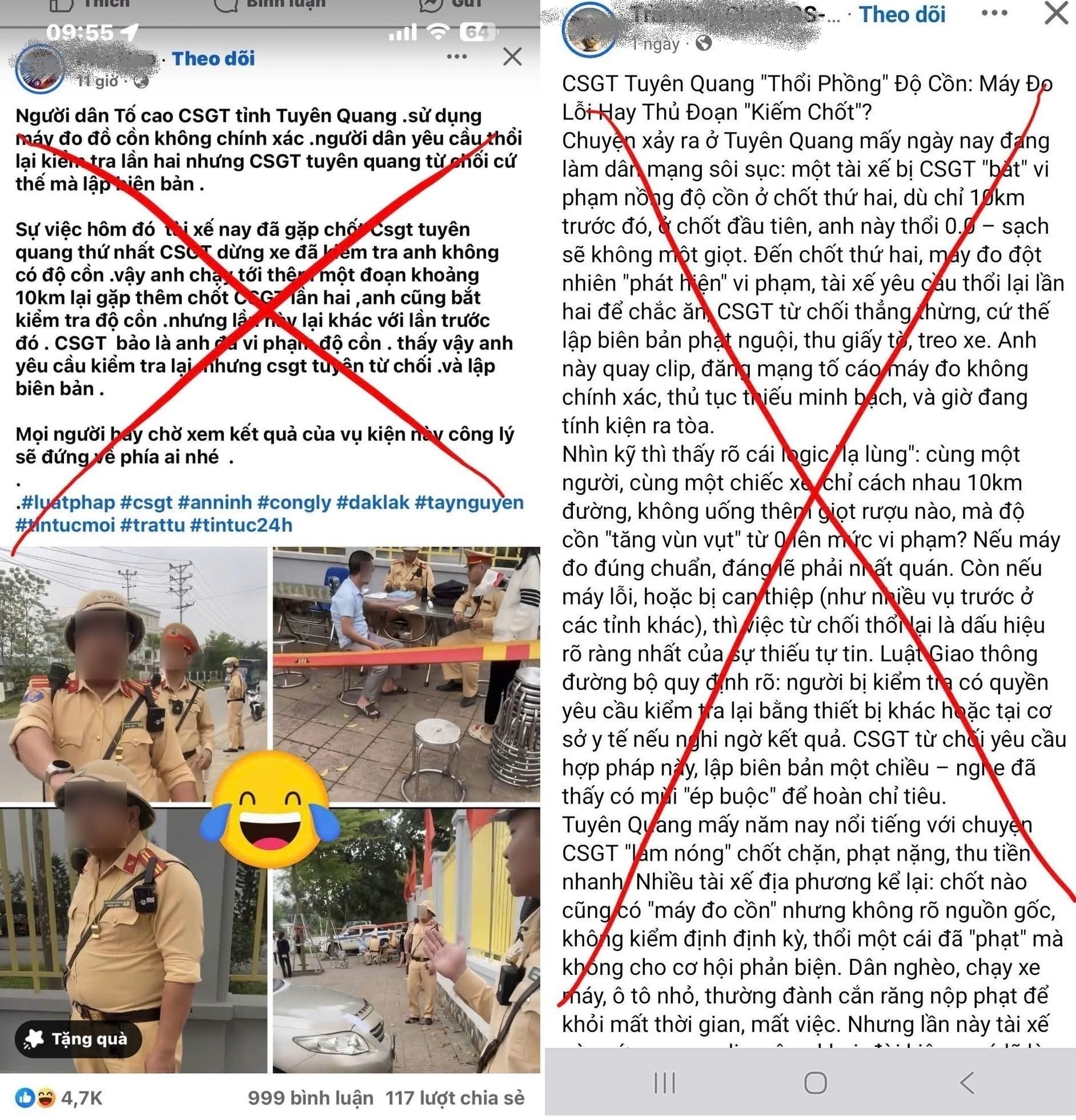 Bài viết trên facebook thông tin sai sự thật, bịa đặt nhằm bôi nhọ, hạ uy tín lực lượng chức năng.
