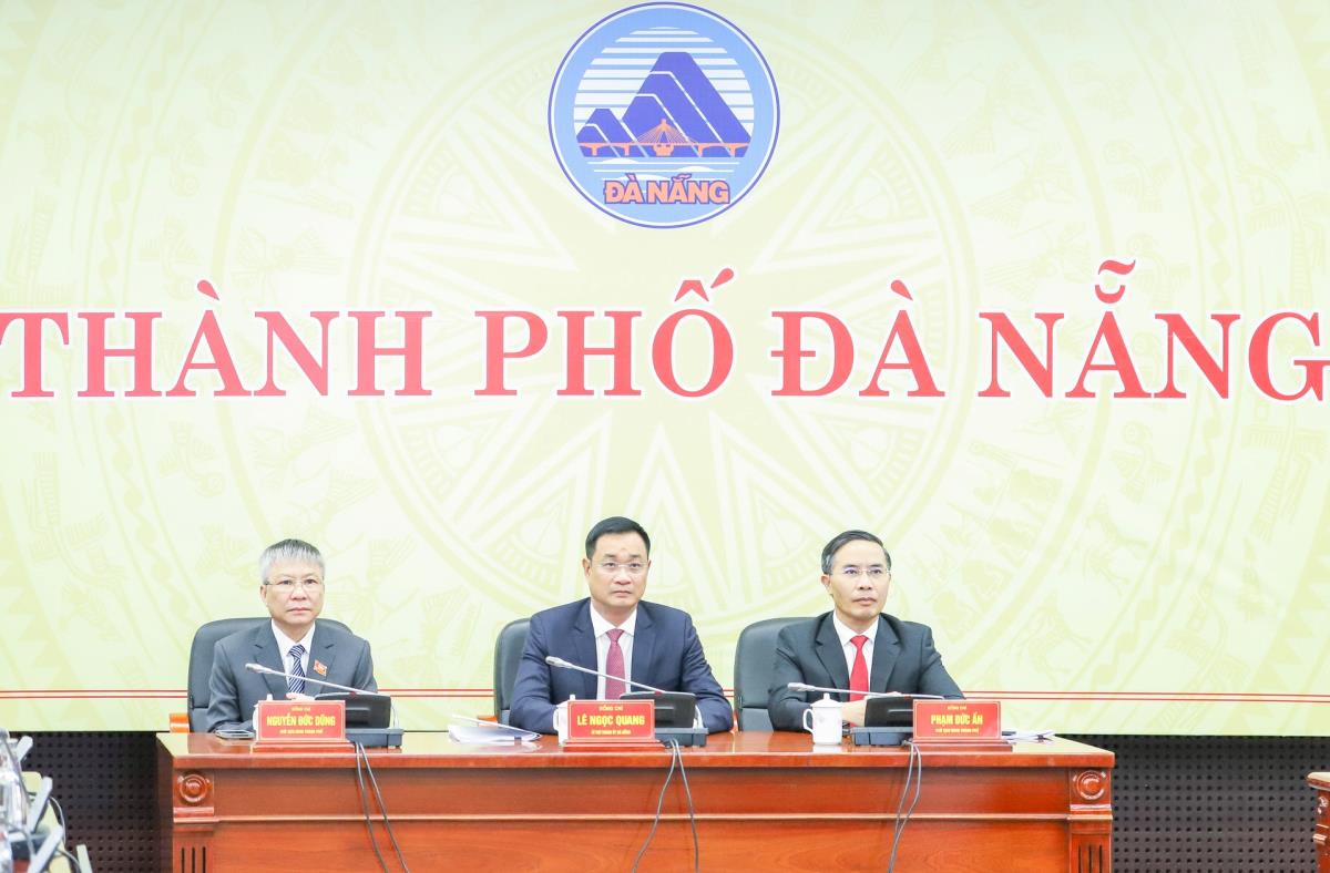 Bí thư Thành ủy Đà Nẵng Lê Ngọc Quang, Chủ tịch HĐND TP Nguyễn Đức Dũng và Chủ tịch UBND TP Phạm Đức Ấn chủ trì tại điểm cầu Đà Nẵng.