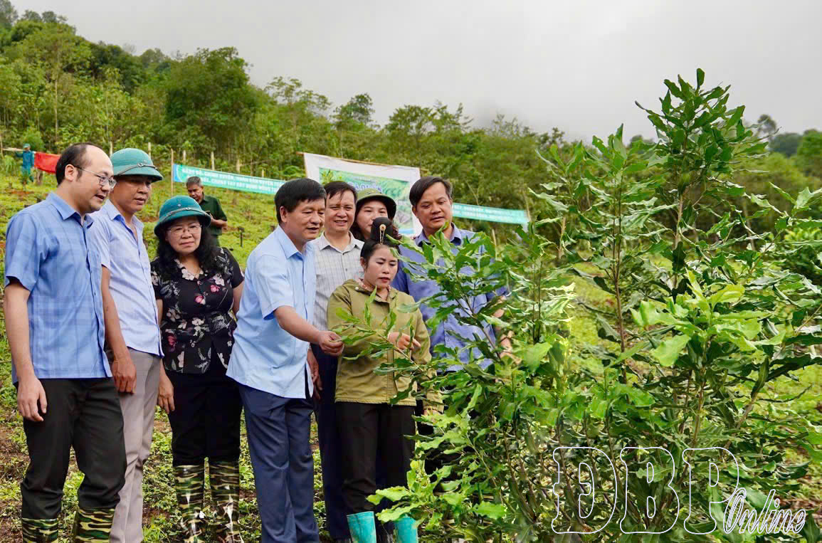 Lãnh đạo tỉnh kiểm tra các dự án phát triển cây mắc ca tại xã Tuần Giáo. Ảnh: Phạm Trung