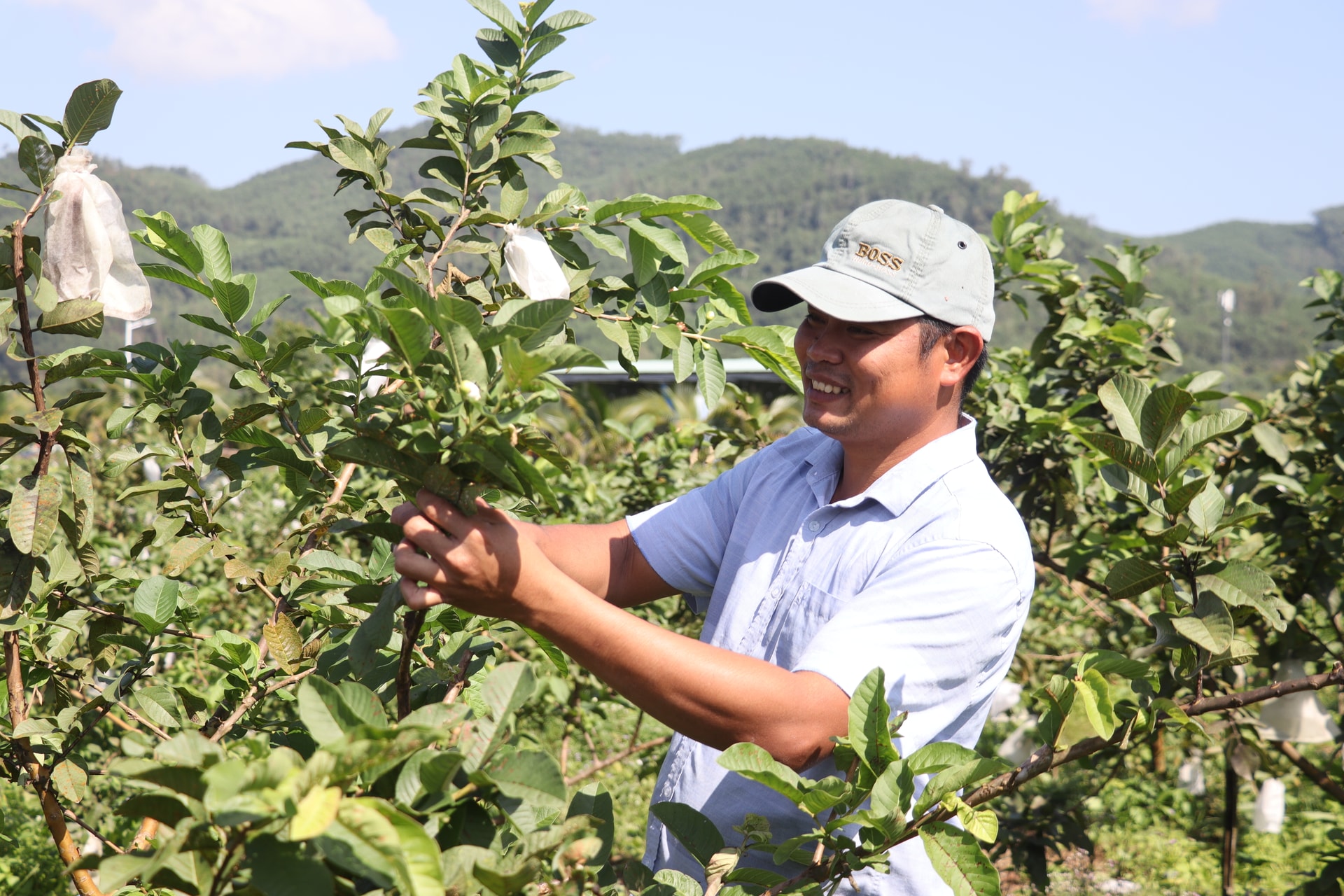 Tại xã Quế Sơn, anh Trương Văn Arin, Giám đốc Hợp tác xã Nông nghiệp Rừng Bảo, là một trong những người tiên phong trong chuyển đổi từ cây lâm nghiệp sang cây ăn trái. Anh Arin cho biết, trước đây khu đất này chủ yếu trồng keo và bạch đàn khiến đất đai bị chai cứng, đá sỏi nhiều và thiếu hụt vi sinh vật. Sau 2 năm kiên trì cải tạo, khoan giếng tìm nguồn nước và xây dựng thảm cỏ xanh để giữ độ ẩm, hợp tác xã đã hình thành vùng trồng chuyên canh với 1.200 gốc ổi và 350 gốc mận phát triển đồng đều.
