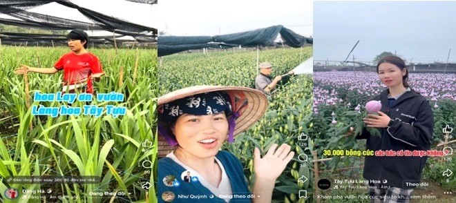Nhiều hộ gia đình trồng hoa ở Tây Tựu chủ động ứng dụng công nghệ số để quảng bá, tiêu thụ sản phẩm. Ảnh ĐH