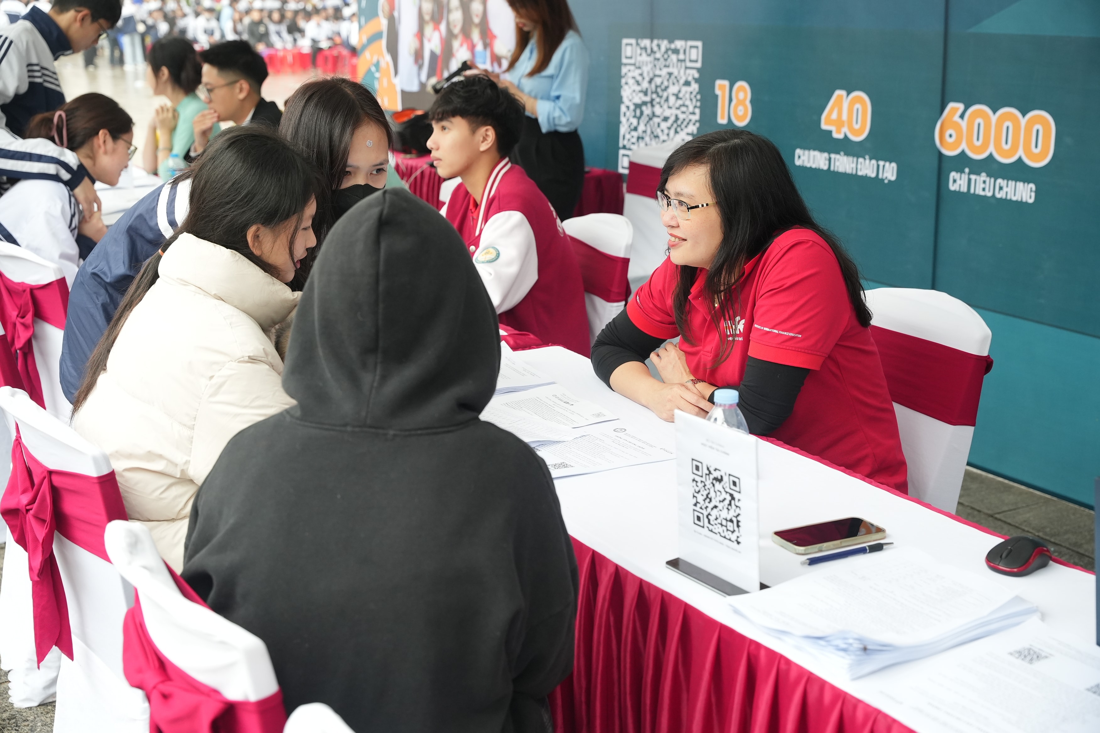 TS Trịnh Thanh Huyền - Viện trưởng Viện Đào tạo Quốc tế, Học viện Tài chính tư vấn cho thí sinh tại Ngày hội Tư vấn tuyển sinh - Hướng nghiệp 2026. Ảnh: Ngọc Bích