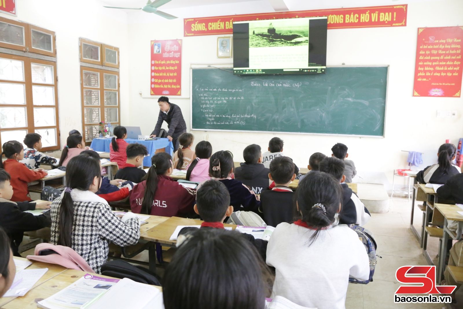 Tiết học tại Trường THCS Mường Khoa, xã Tạ Khoa được trình chiếu minh họa.
