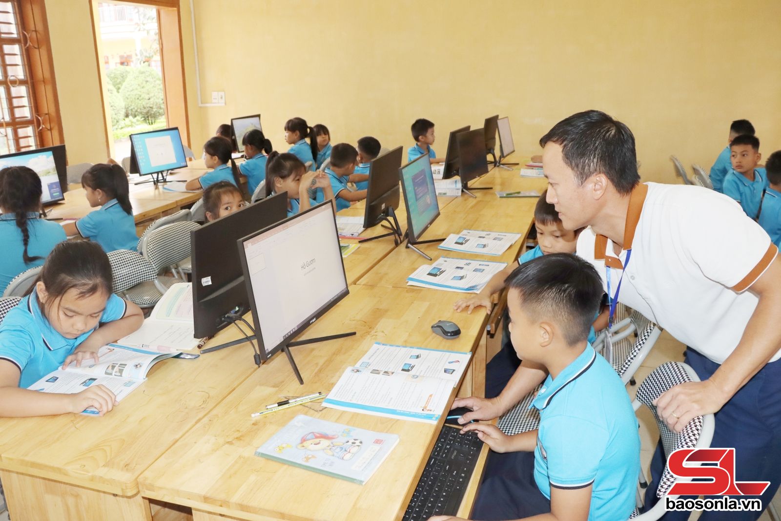 Giờ học tin của thầy và trò Trường Tiểu học Cò Nòi, xã Mai Sơn.