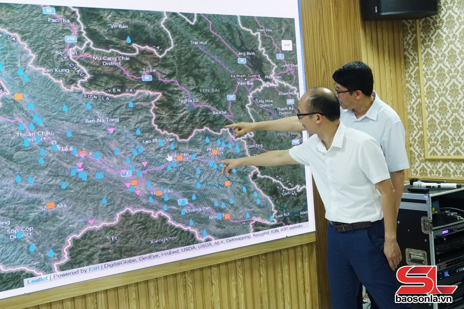 Cán bộ Chi cục Thủy lợi và Tài nguyên nước theo dõi bản đồ dự báo phục vụ chuyển đổi số trong phòng, chống thiên tai.