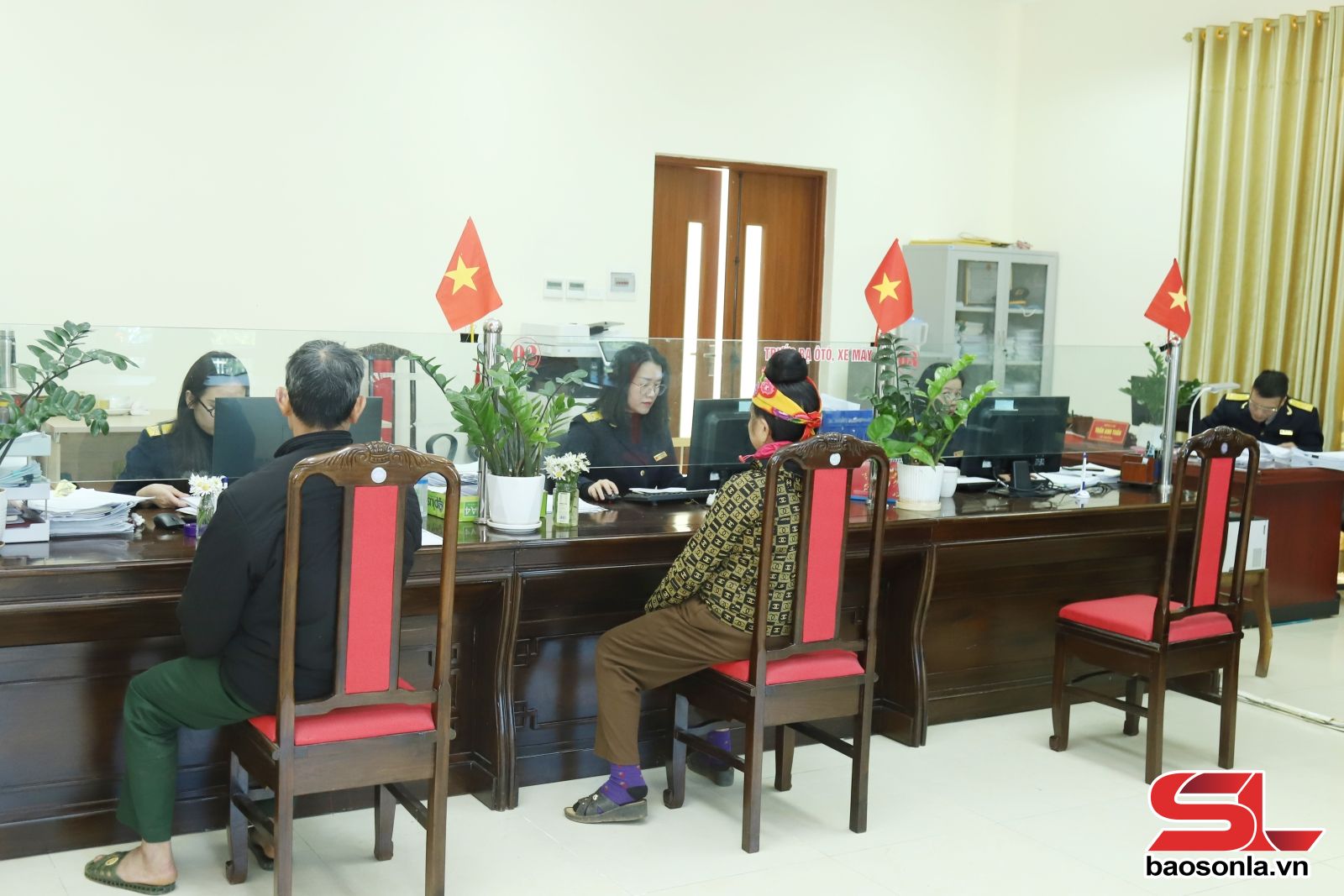 Bộ phận một cửa Thuế cơ sở 1 tiếp nhận và hưỡng dẫn người dân kê khai thuế điện tử.