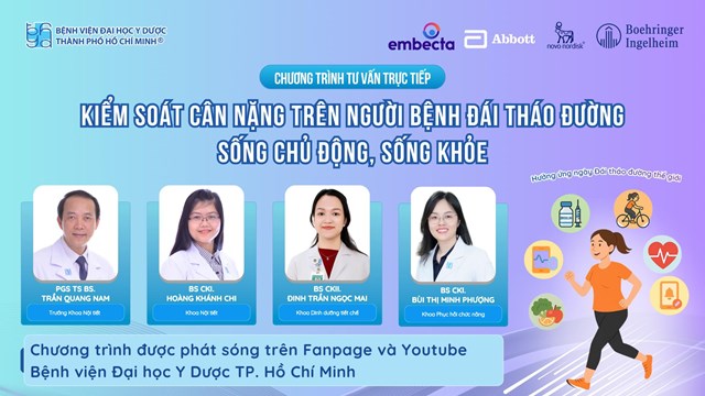 Chương trình tư vấn trực tuyến "Kiểm soát cân nặng trên người bệnh đái tháo đường – Sống chủ động, sống khỏe" được BV ĐHYD tổ chức ngày 8/11, phối hợp cùng các công ty Embecta Việt Nam, Abbott, Novo Nordisk và Boehringer Ingelheim, hưởng ứng Ngày Đái tháo đường Thế giới.