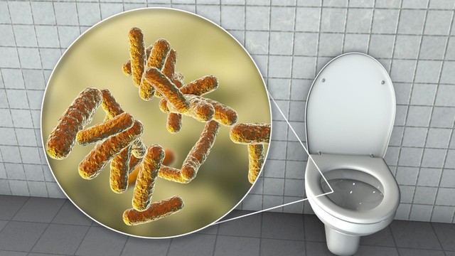 Vi khuẩn có thể tích tụ và lây lan trên cơ thể và quần áo của mọi người thông qua quá trình xả bồn cầu, từ các giọt bắn hoặc lây truyền gián tiếp sau khi vi khuẩn lắng đọng trên các bề mặt trong nhà vệ sinh như bồn cầu, vòi nước, tay nắm cửa…
