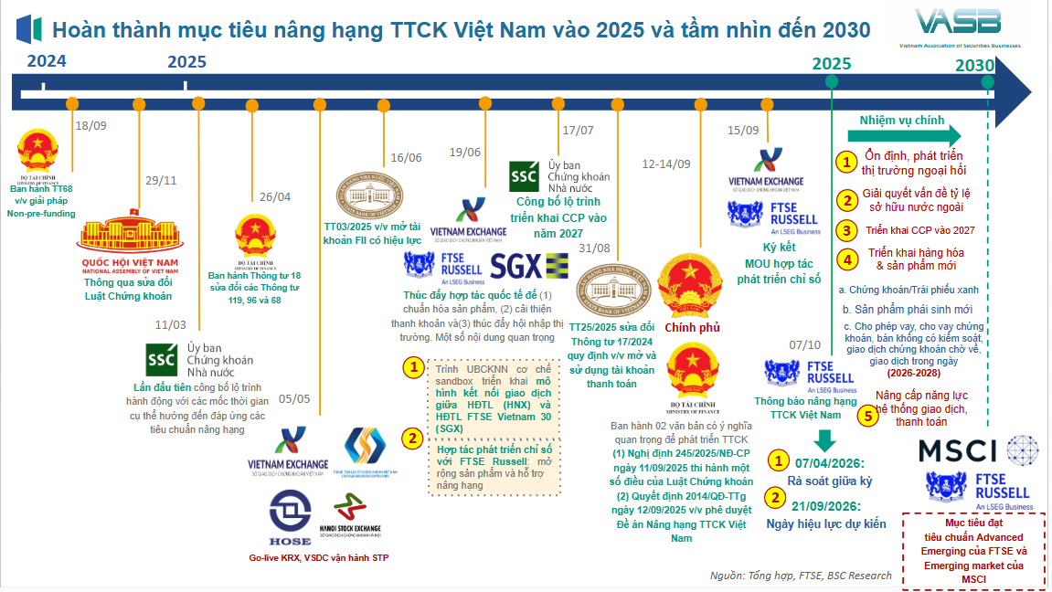 Năm 2025 được TS. Trần Thăng Long đánh giá là một năm bản lề mang tính lịch sử của thị trường chứng khoán Việt Nam. Điểm nhấn lớn nhất là việc Việt Nam chính thức được FTSE Russell nâng hạng từ thị trường cận biên lên thị trường mới nổi thứ cấp vào tháng 10/2025.