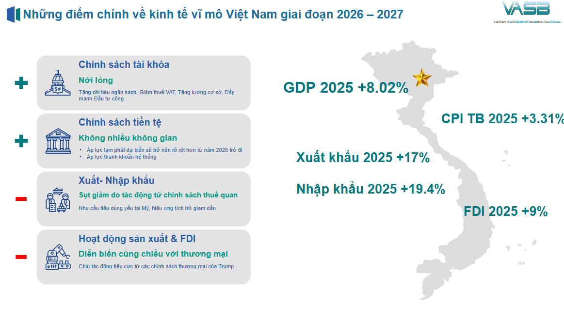 Bước sang giai đoạn 2026–2027, bức tranh kinh tế Việt Nam được phác họa theo hướng tăng trưởng cao nhưng đi kèm nhiều thách thức hơn. Chính sách tài khóa tiếp tục đóng vai trò trụ cột, song chính sách tiền tệ sẽ phải đối mặt với dư địa điều hành ngày càng thu hẹp và áp lực lạm phát gia tăng.