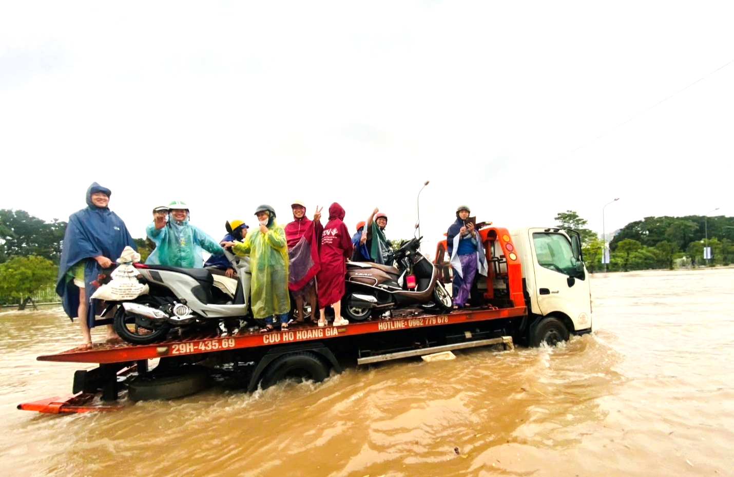 Cảnh Hà Nội ngập sâu sau trận bão số 11.