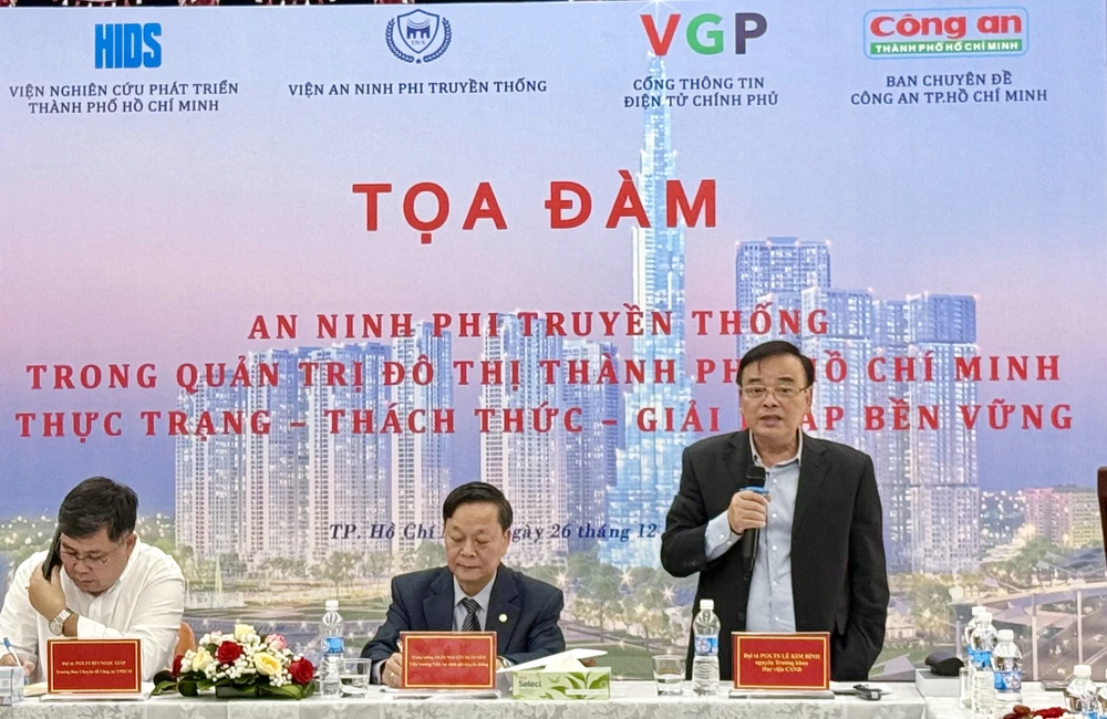 Ngày 26-12, Viện An ninh phi truyền thống (Trường Quản trị và Kinh doanh, ĐHQG Hà Nội) phối hợp cùng Báo Công an TP.HCM, Cổng Thông tin điện tử Chính phủ và Viện Nghiên cứu phát triển TP.HCM tổ chức Tọa đàm với chủ đề "An ninh phi truyền thống trong quản trị đô thị TP.HCM: Thực trạng - thách thức - giải pháp bền vững".