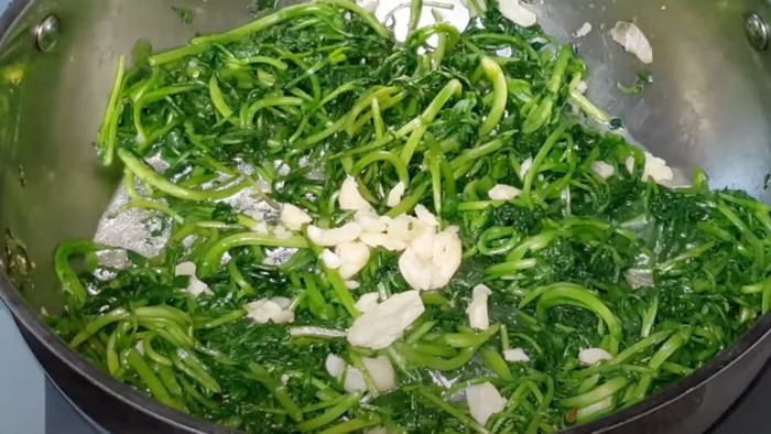 Cải xoong xào tỏi: Món ăn đơn giản nhưng giữ được trọn vị cay nhẹ và hương thơm đặc trưng của rau. Nên xào nhanh trên lửa lớn để rau vẫn xanh giòn.