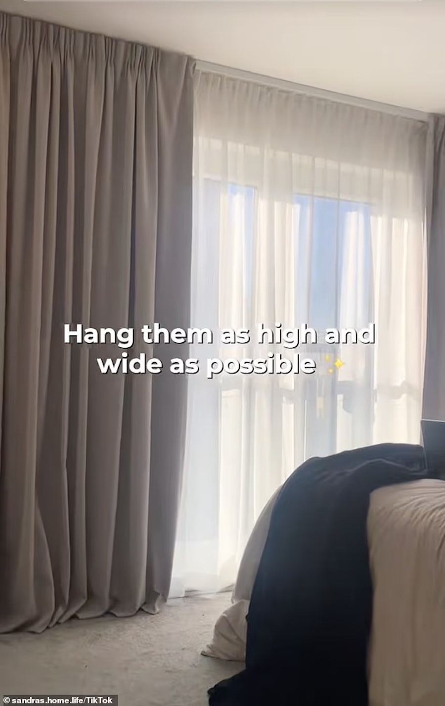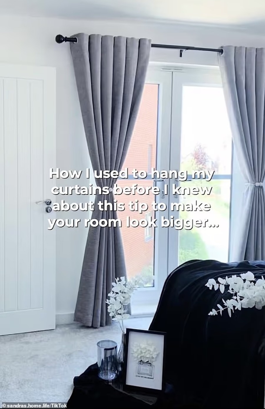 Trong đoạn video thu hút rất nhiều lượt tương tác, Sandra cho biết chỉ cần thay đổi cách treo rèm cửa là đủ làm thay đổi cảm giác về không gian của căn phòng.