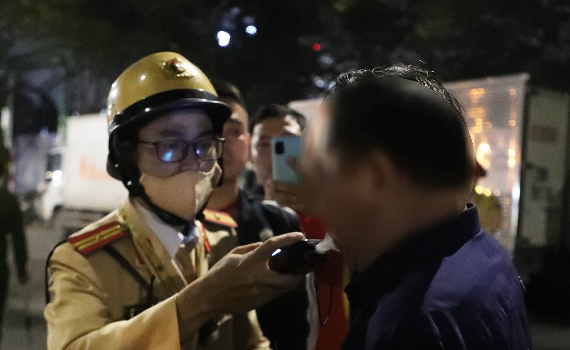 Kiểm tra nồng độ cồn với lái xe. Ảnh: PV