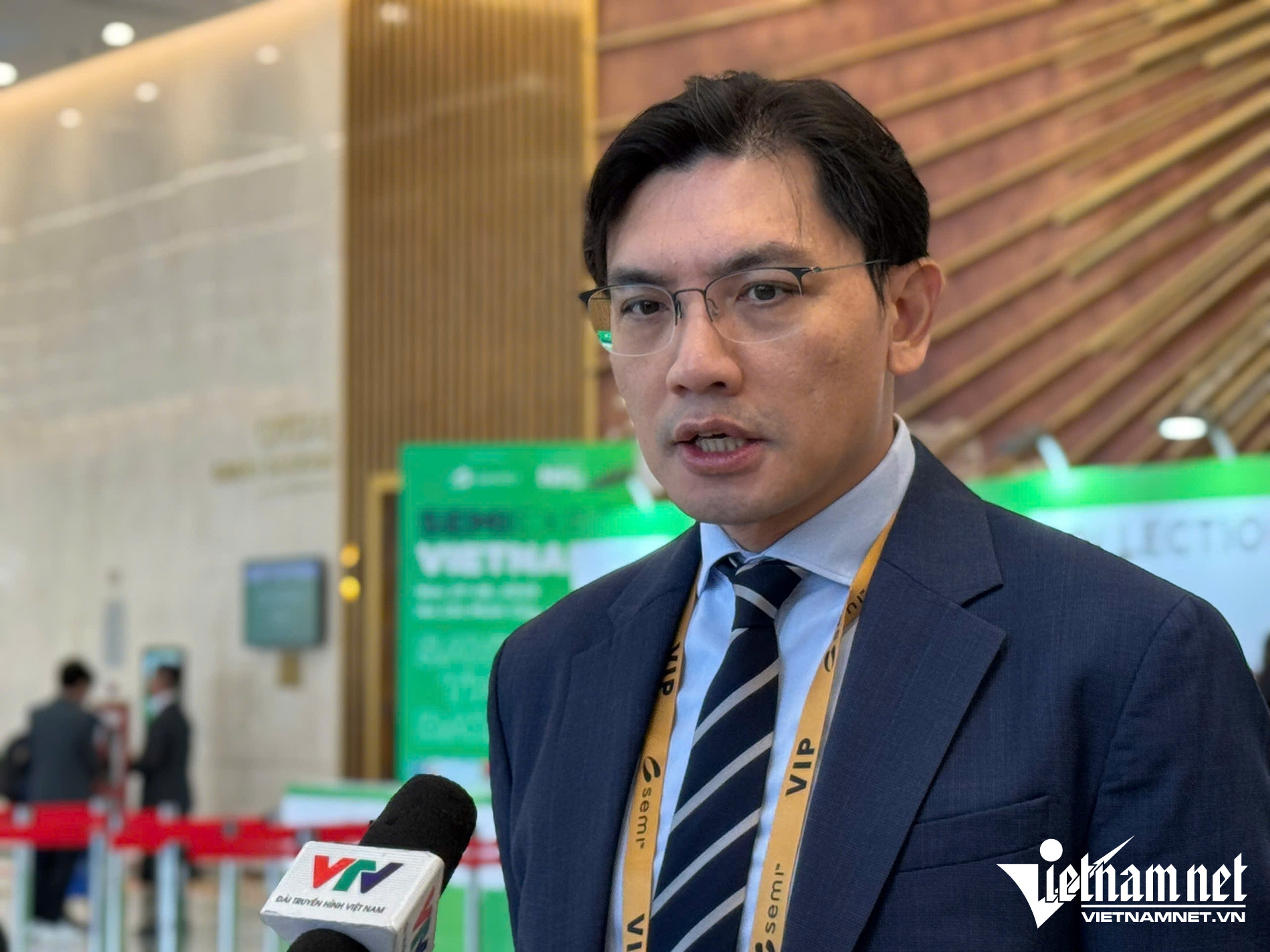 Ông Clark Tseng - Phó Chủ tịch Hiệp hội bán dẫn SEMI - trao đổi bên lề triển lãm SEMI EXPO Việt Nam 2025. Ảnh: Du Lam