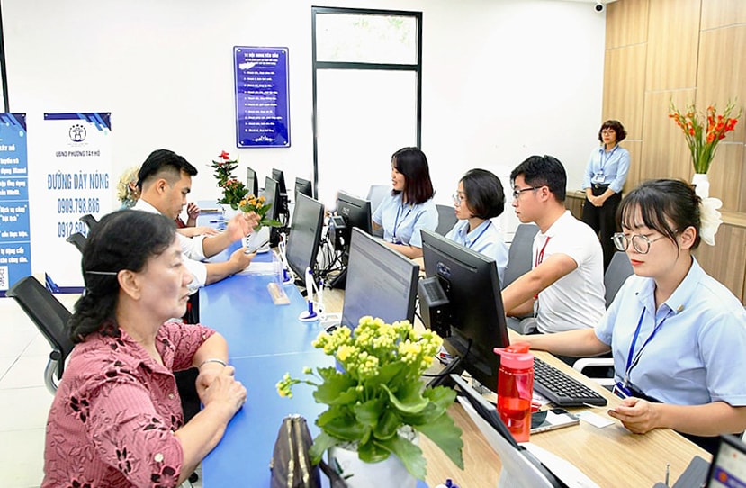 Tiếp nhận hồ sơ, giải quyết thủ tục hành chính cho người dân tại Điểm phục vụ hành chính công của phường Tây Hồ. Ảnh: Nhật Nam