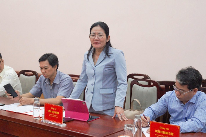 Đồng chí Trần Thị Hường, Phó Bí thư Thường trực Đảng ủy Phường Bàn Cờ, phát biểu tại hội nghị