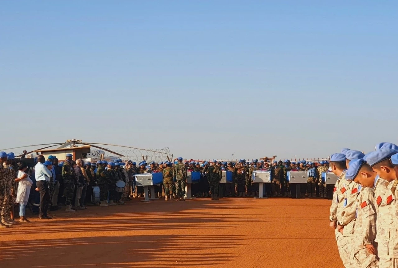Do vậy, tất cả các bước từ công tác vận chuyển, bảo quản, nghi thức tưởng niệm, tổ chức lễ tiễn đưa tại phái bộ đều được thực hiện trang trọng, thể hiện sự tri ân sâu sắc của đồng đội và cộng đồng quốc tế đối với sự hy sinh ấy.