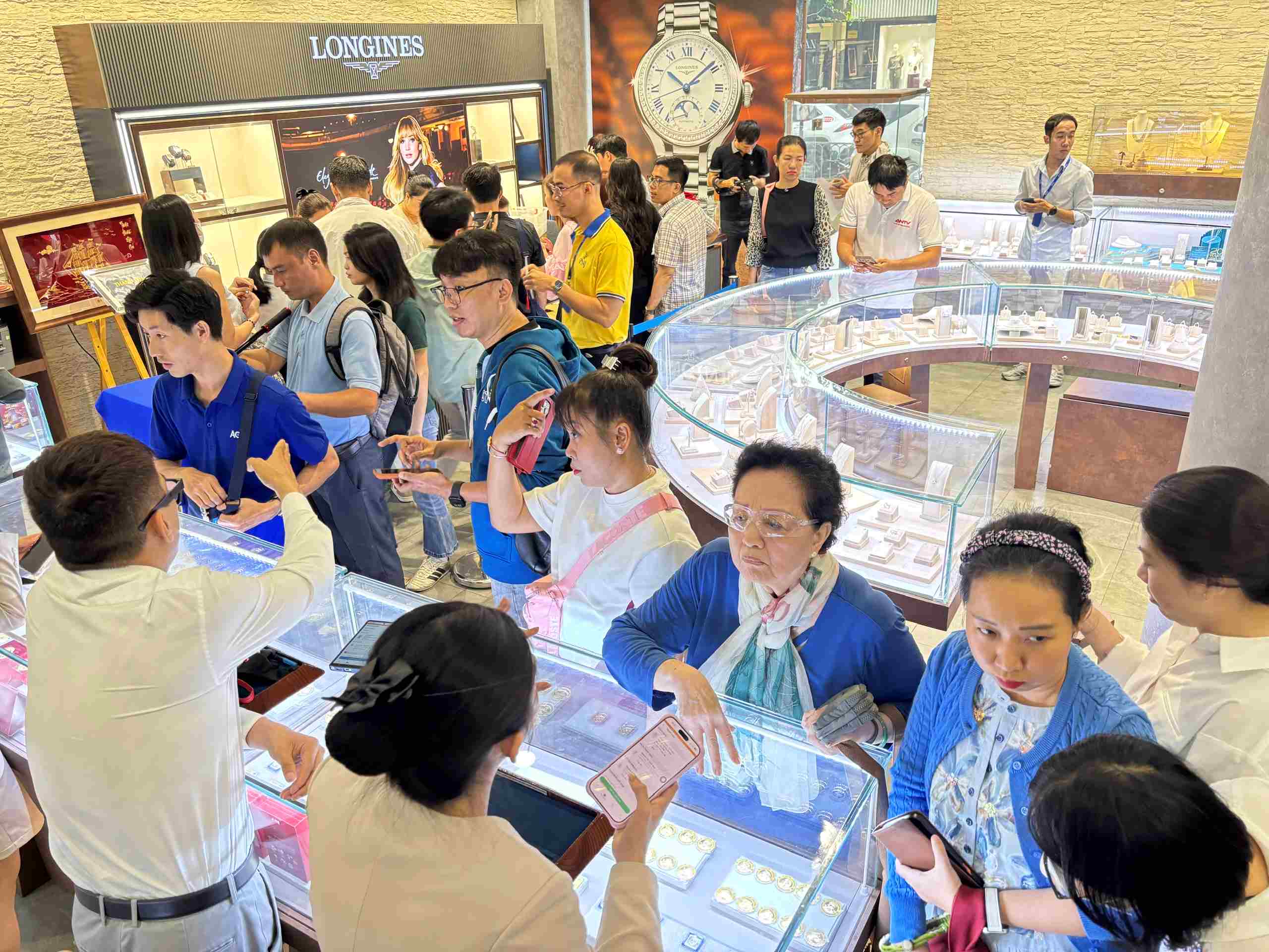 Rất đông người dân tập trung tại cửa hàng PNJ Next Hai Bà Trưng (TPHCM) để mua lấy may trong ngày vía Thần Tài. Ảnh: Minh Anh