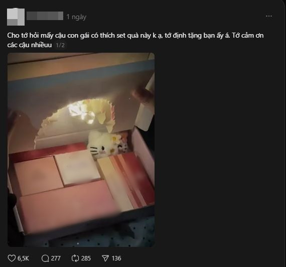 Song song với bài viết của bạn nữ này, một bài viết khác cũng được quan tâm không kém cạnh. Trong đó, một chàng trai khác cũng đang cân nhắc set quà tương tự. Thế nhưng trước khi quyết định, anh đã chủ động đăng bài hỏi ý kiến cộng đồng mạng. Kết quả là bài đăng nhận được hàng loạt lời khuyên hữu ích, góp ý chân thành. Trái ngược với trường hợp nêu trên, cách hỏi của anh chàng này nhận về nhiều lời khen, cho thấy sự tinh tế đối với bạn gái của mình.