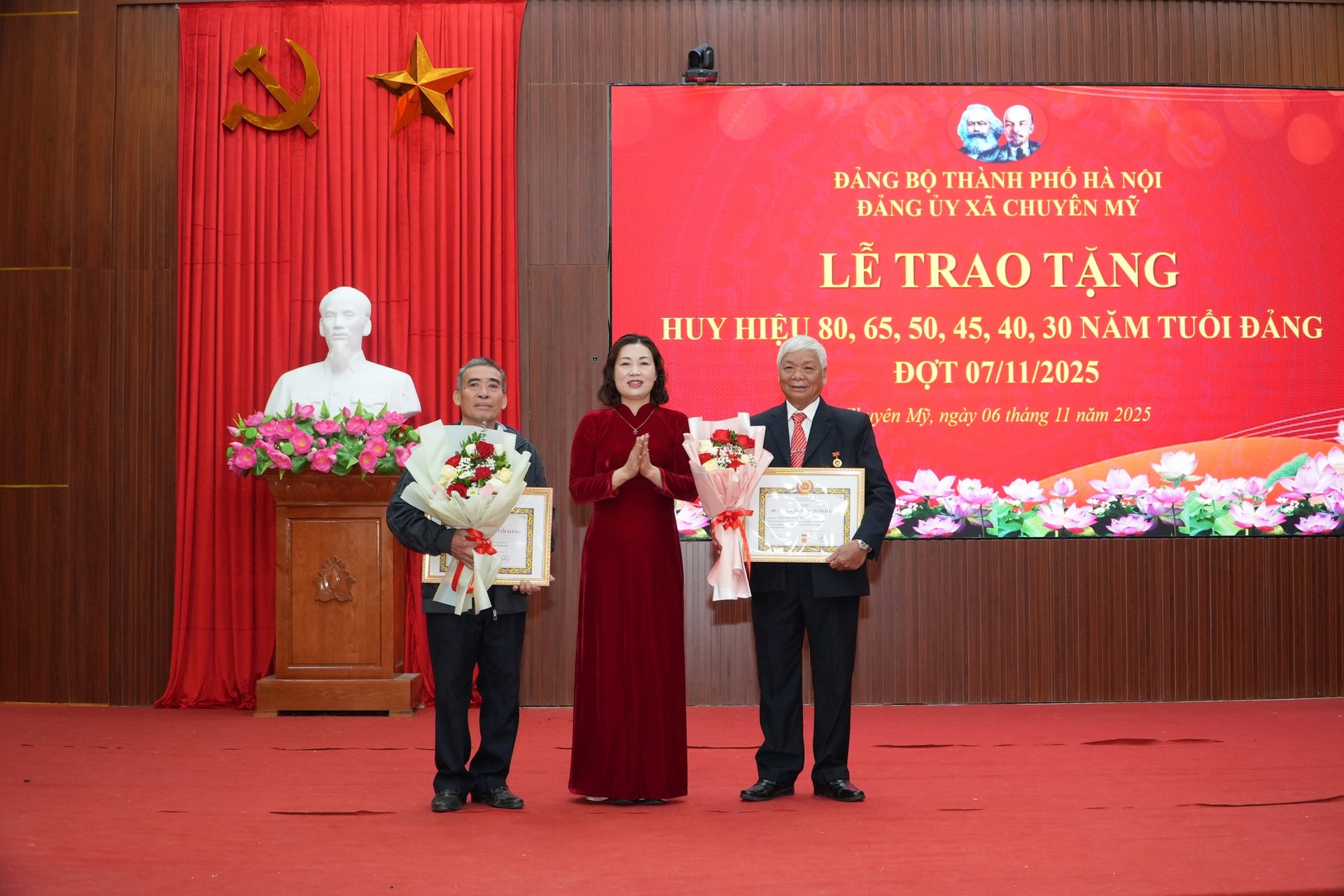 Đợt này, Đảng bộ xã Chuyên Mỹ có 18 đảng viên được tặng Huy hiệu Đảng; trong đó có 1 đồng chí được nhận Huy hiệu 80 năm tuổi Đảng; 2 đồng chí được nhận Huy hiệu 65 năm tuổi Đảng; 15 đồng chí nhận Huy hiệu 50, 45, 40, 30 năm tuổi Đảng.