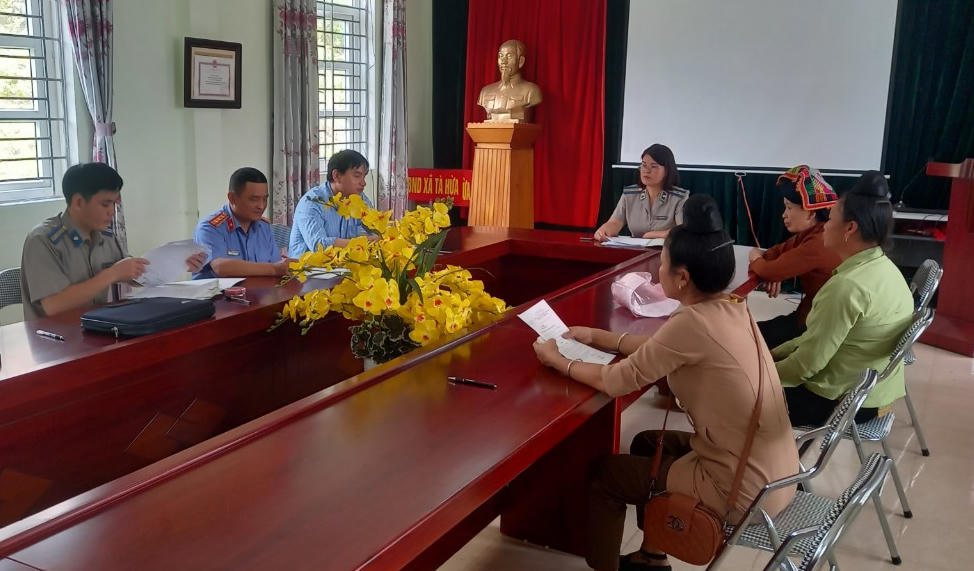 Hình ảnh một buổi làm việc của cán bộ thi hành án dân sự tỉnh Lai Châu ở cơ sở.
