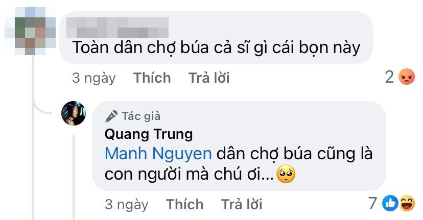 Hoặc như trường hợp của Hòa Minzy - một nữ ca sĩ không ít lần mạnh dạn trả lời các bình luận có phần gây tổn thương với những từ ngữ nặng nề. Hòa Minzy chọn cách phản hồi nhẹ nhàng, có chút hài hước để làm dịu tình hình, nhưng vẫn đủ "chất" để cho thấy sự mạnh mẽ của bản thân. Tương tự như trường hợp của Quang Trung, anh chàng chọn sự mềm mỏng, không gây áp lực nhưng vẫn đủ sự "đanh thép", khó có thể phản bác.