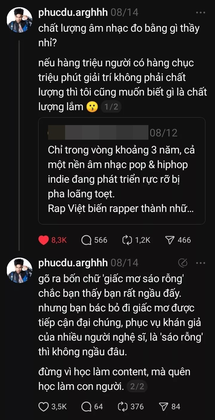 Một sản phẩm nghệ sĩ phát hành đến công chúng có thể hay, có thể tệ, và ngôn từ cũng nằm trong số đó. Đáp trả làm sao thật tinh tế, để ai nấy "tâm phục khẩu phục" là một môn nghệ thuật khó nhằn, cần sự suy xét cẩn trọng. Để sau cùng, người nghệ sĩ vẫn để lại hình ảnh đẹp trong lòng công chúng.