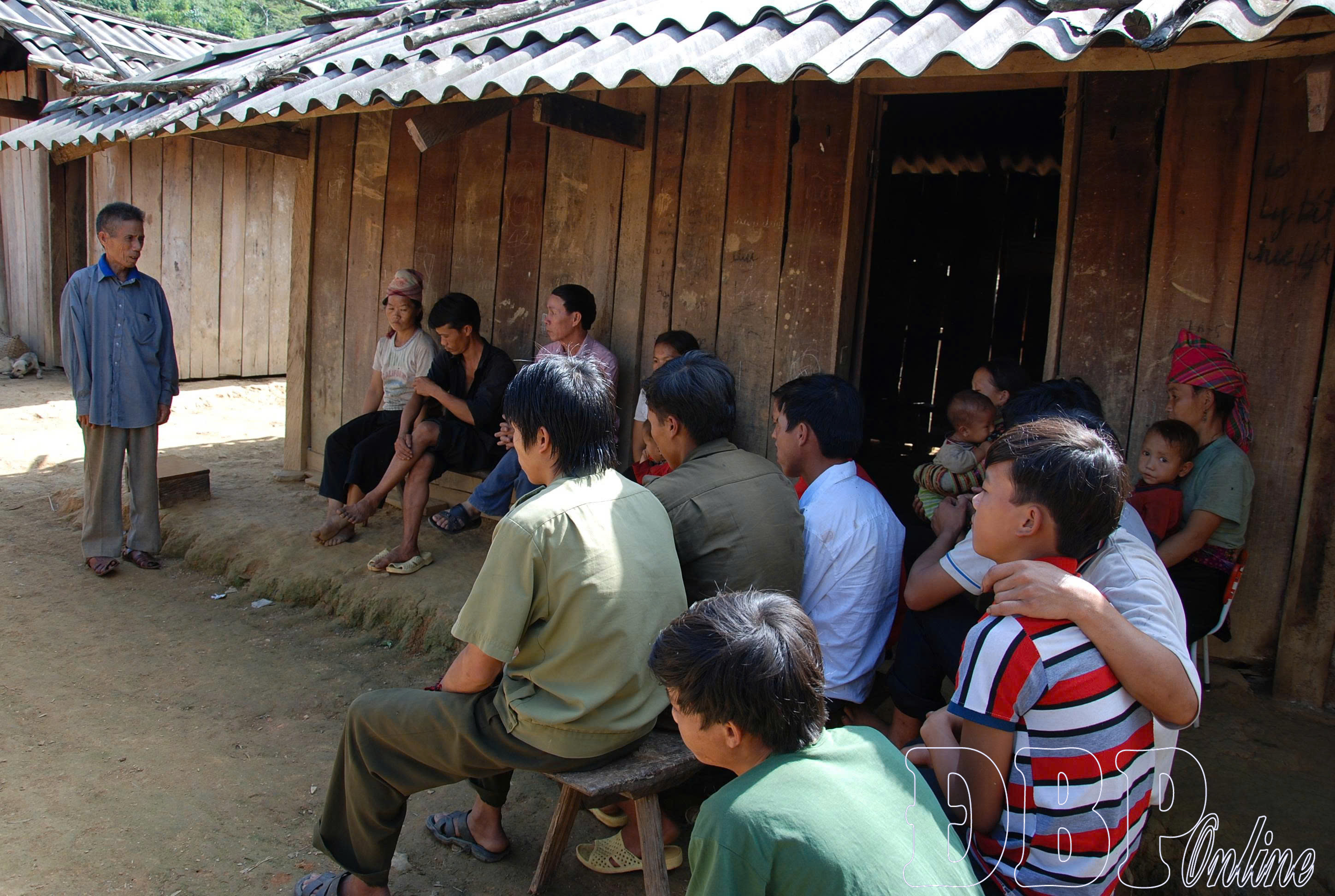 Ông Lầu A Dính trong 1 buổi tuyên truyền, vận động người dân Huổi Min.
