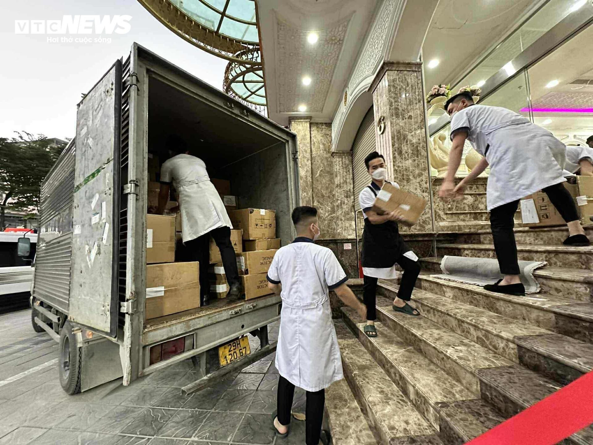 Đến 18h ngày, đã có 3 ô tô tải được huy động đến thẩm mỹ viện Mailisa Hà Nội để phục vụ công tác vận chuyển.
