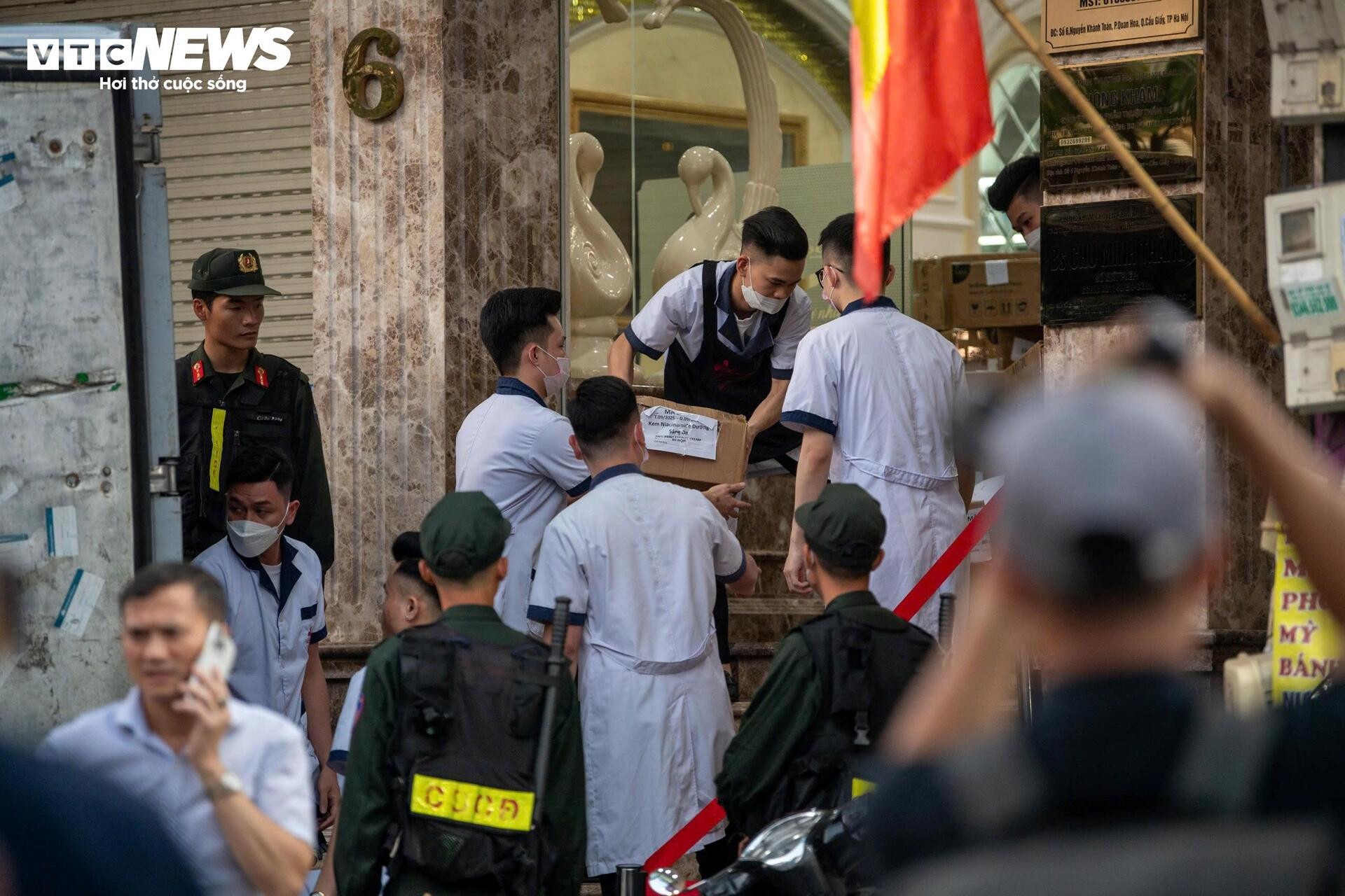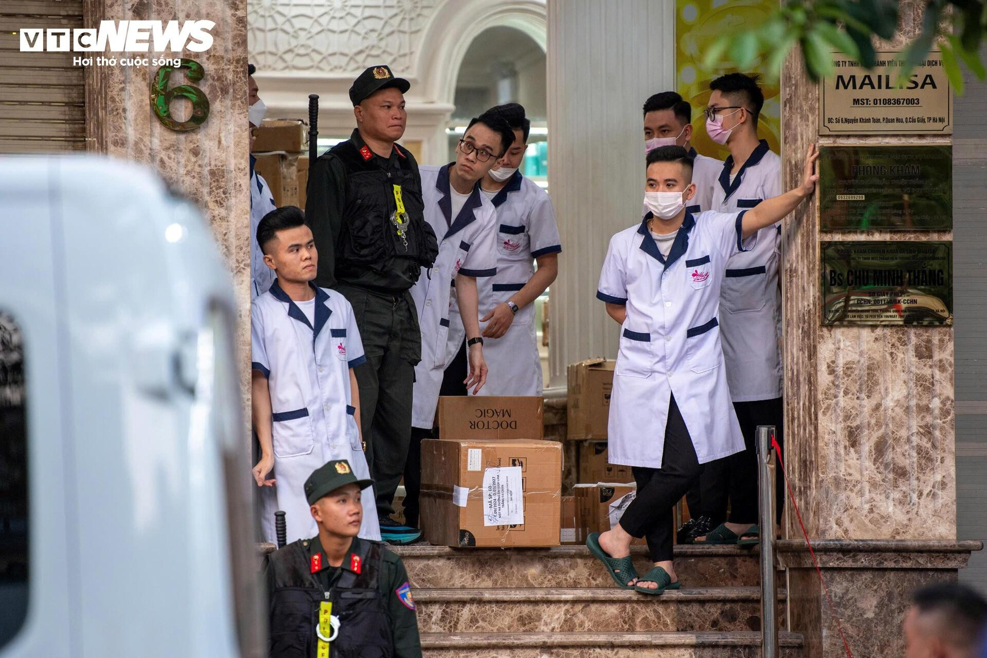 Sáng 13/11, cảnh sát xuất hiện tại cơ sở thẩm mỹ viện Mailisa (số 6 Nguyễn Khánh Toàn, phường Nghĩa Đô, Hà Nội).