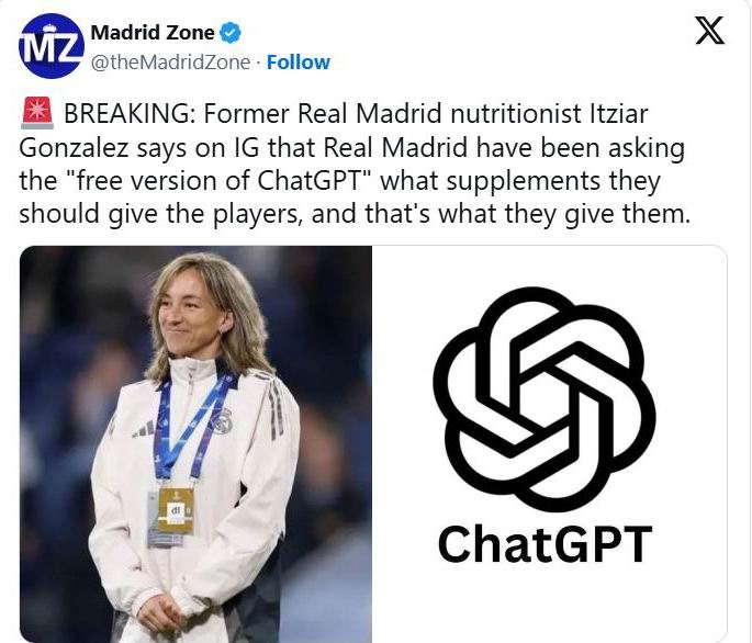 Bác sĩ dinh dưỡng Gonzalez của Real Madrid bảo rằng, bà được yêu cầu cung cấp dinh dưỡng cho cầu thủ và làm theo lệnh.