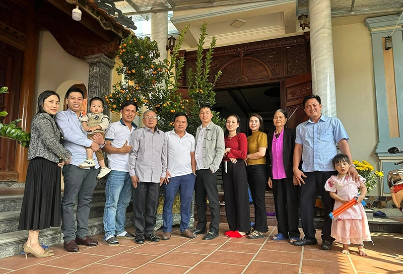 Dù đón tết muộn, nhưng với anh Lê Văn Sơn (thứ hai bên phải) được đoàn viên cùng gia đình sau thời gian dài làm việc xa nhà là niềm hạnh phúc không thể đong đếm.