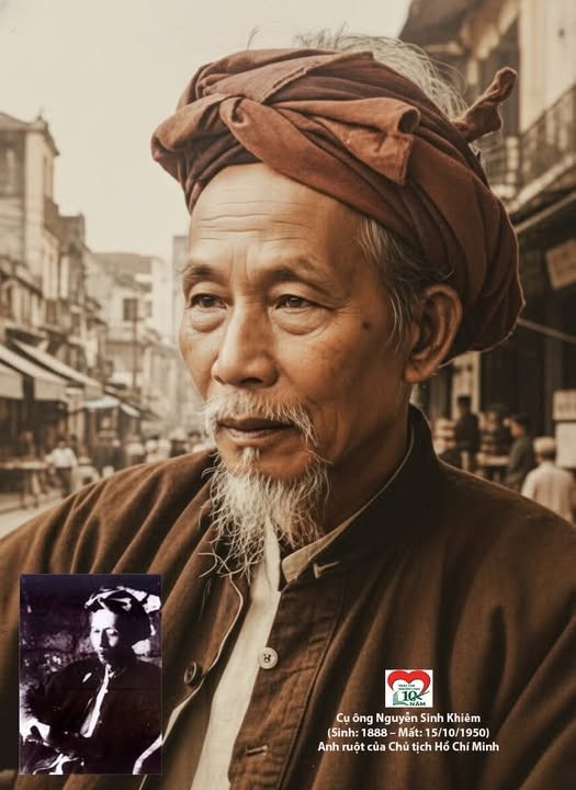 Ảnh đính kèm: Chân dung cụ ông Nguyễn Sinh Khiêm – người anh ruột của Bác Hồ lúc sinh thời, vừa được “Trái tim người lính” phục dựng màu từ ảnh đen trắng.