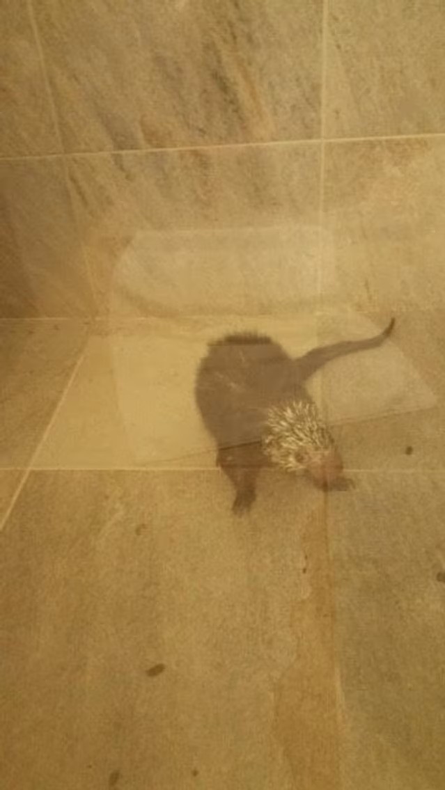 Con nhím mà Rick Phillips phát hiện trong phòng tắm của mình. Ảnh: Rick Phillips.