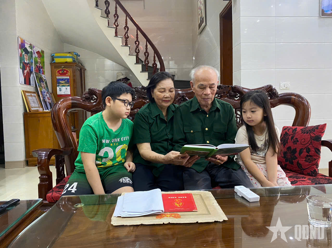 Vợ chồng ông Trần Văn Thân và bà Vũ Thị Liên cùng các cháu ôn lại những kỷ niệm trên Đường 20 - Quyết Thắng.