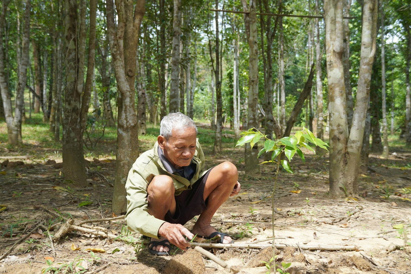 Từ đó, hai vợ chồng cùng nhau bắt đầu hành trình trồng rừng “đi ngược số đông”. Không có cây giống, ông gói cơm muối, đi sâu vào rừng tìm những cây lim, huỳnh, trầm non. Cứ thấy cây nào nhỏ bằng ngón tay, ông nhẹ nhàng bứng đem về, ươm trong chậu đất. Bà Dụng ở nhà thì đem nước từ suối gánh lên tưới cây, chặt cỏ, đắp đất, kiên trì như một nghi lễ mỗi ngày.