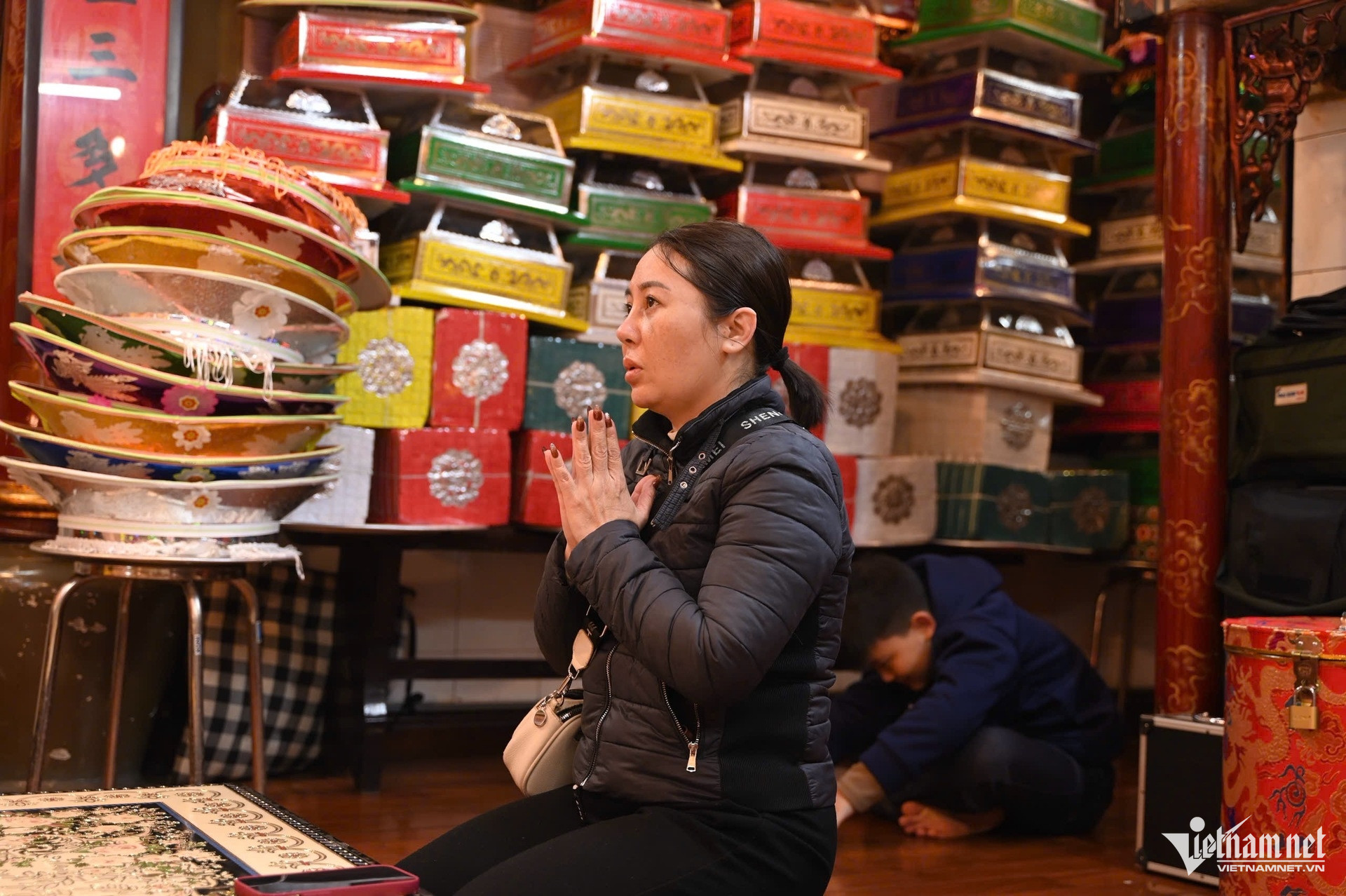 Người dân tới đền Hàng Bạc để cầu nguyện cho gia đình. Ảnh: Nguyễn Huy
