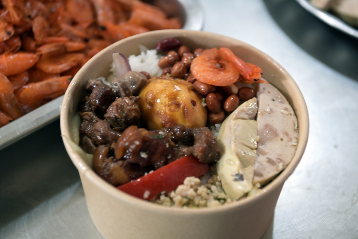 Không ai phân công nhưng mỗi người một việc, phối hợp nhịp nhàng để chế biến 4, 5 loại đồ ăn cho cả nghìn hộp cơm.
