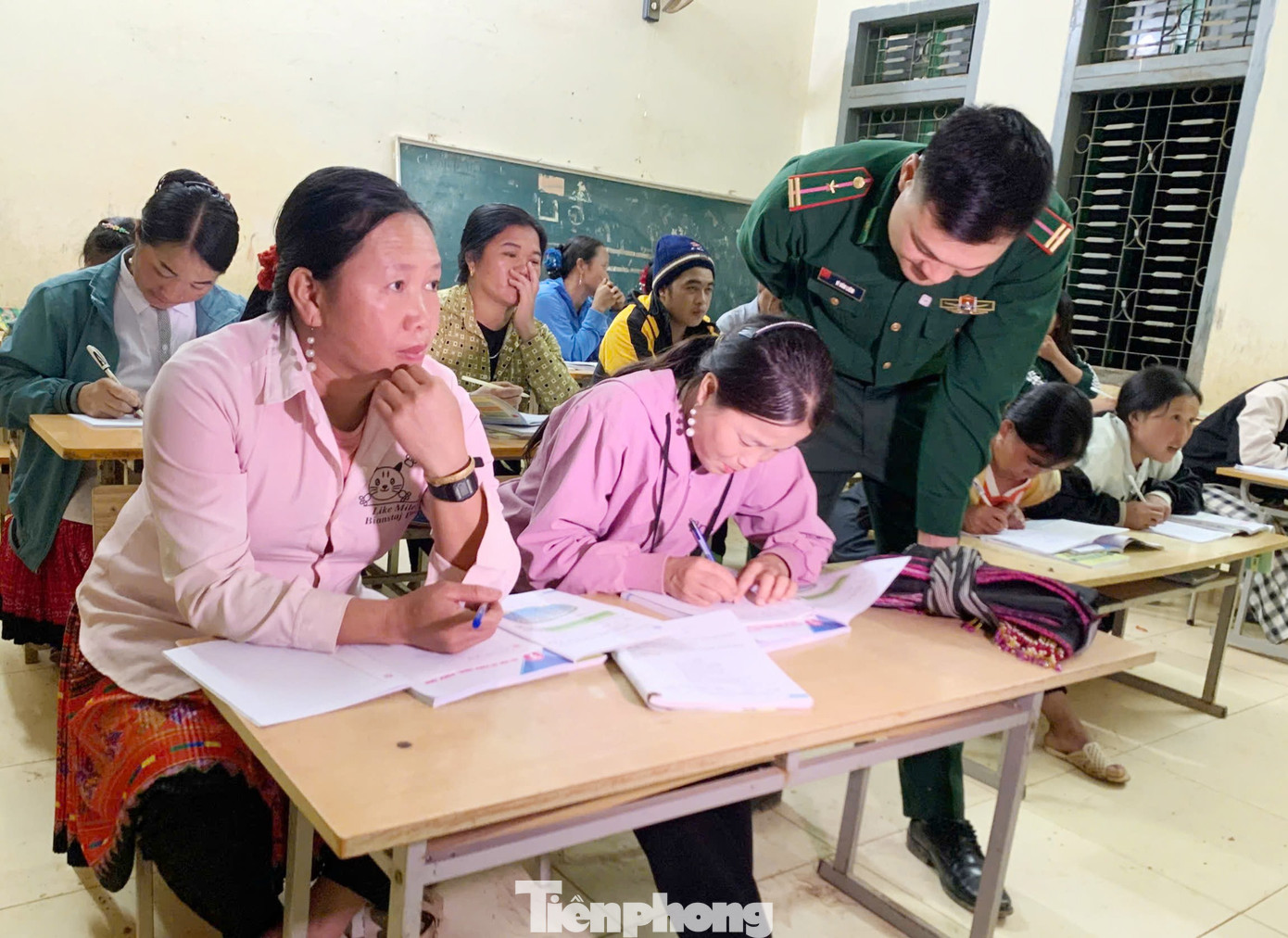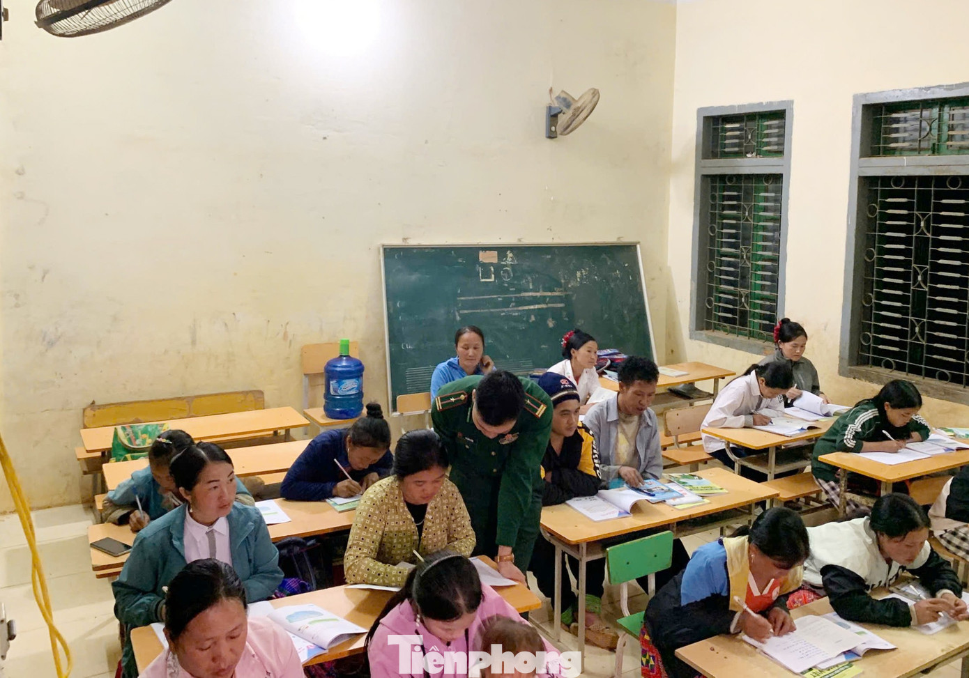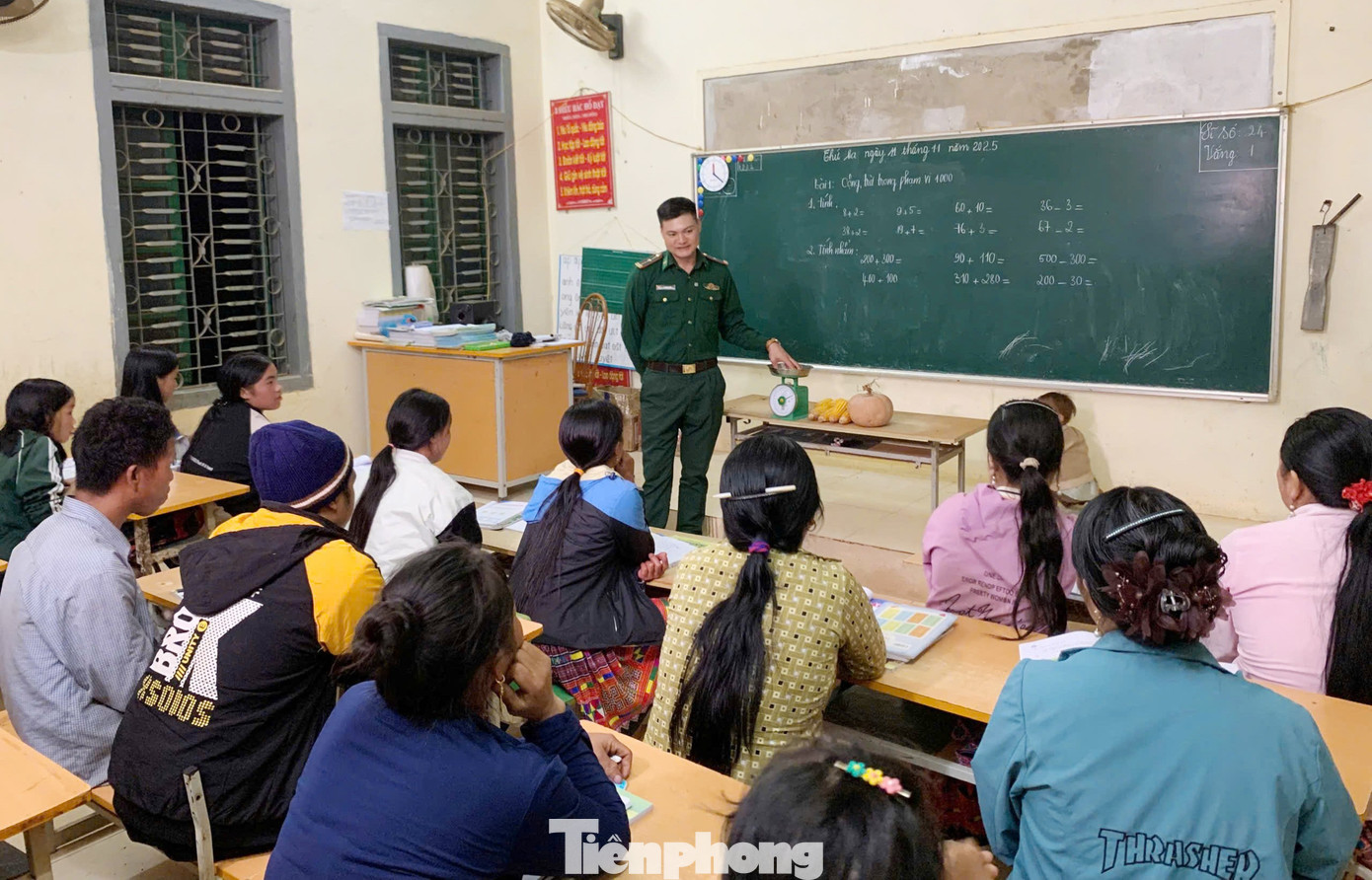 Từ năm 2019, anh Liêm đã tham mưu cho Đồn Biên phòng Mường Lạn phối hợp chính quyền địa phương mở 5 lớp học xóa mù chữ tại các bản xa và khó khăn nhất. Gần 220 học viên, nhiều người đã hơn 50 tuổi, lần đầu tiên cầm bút viết tên mình. Không chỉ tổ chức, mà suốt nhiều năm liền, chính anh là người trực tiếp đứng lớp.