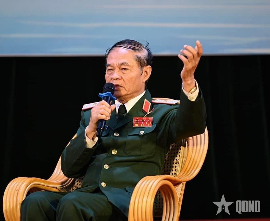 Thiếu tướng Hoàng Kiền trong một buổi giao lưu với khán giả. Ảnh do nhân vật cung cấp