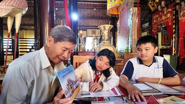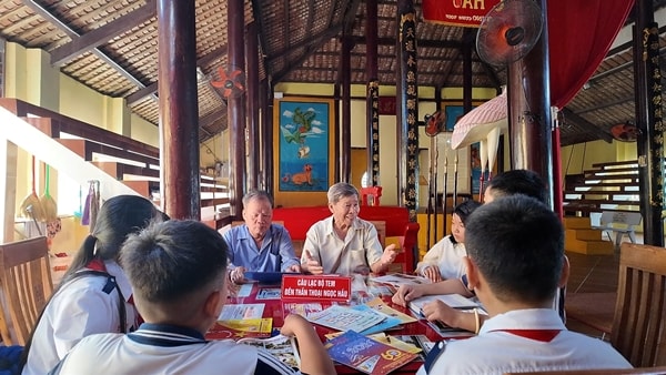 Lớp học tem của thầy Huệ ở đình Thoại Ngọc Hầu (xã Thoại Sơn, tỉnh An Giang) - Ảnh: Văn Phong