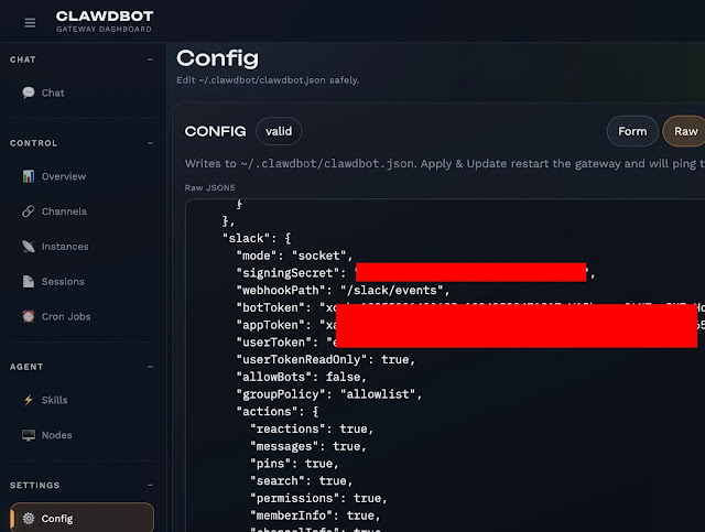 Thông tin cấu hình bị lộ của Clawdbot. Nguồn ảnh: CSN