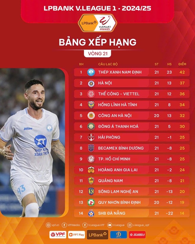 Chiến thắng 3-0 này giúp Công an Hà Nội FC tạm leo lên vị trí thứ 5, với 32 điểm, kém Nam Định 10 điểm nhưng còn một trận chưa đấu. Nếu tiếp tục thắng trận đá bù, khoảng cách chỉ còn là 7 điểm và Quang Hải cùng đồng đội hoàn toàn có quyền nghĩ đến cuộc đua tranh sòng phẳng, trong 5 vòng còn lại của mùa giải.