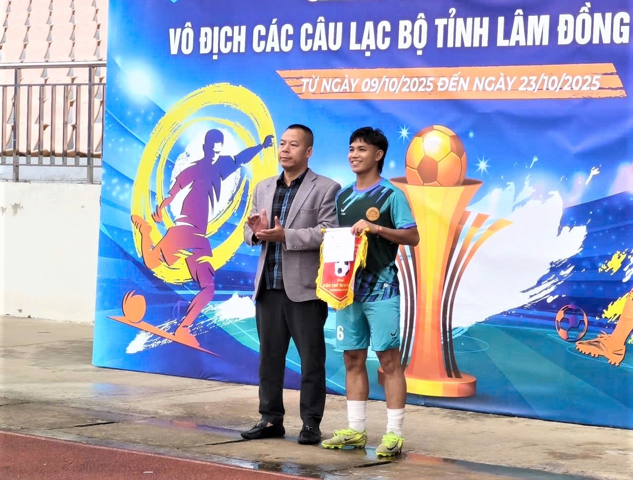 Ban Tổ chức trao giải Cầu thủ xuất sắc nhất cho cầu thủ Nguyễn Văn Đình, CLB Đại Phát